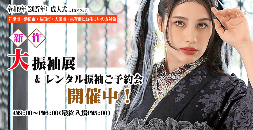 令和9年(2027年)成人式(二十歳のつどい)にむけて新作振袖多数品揃え!